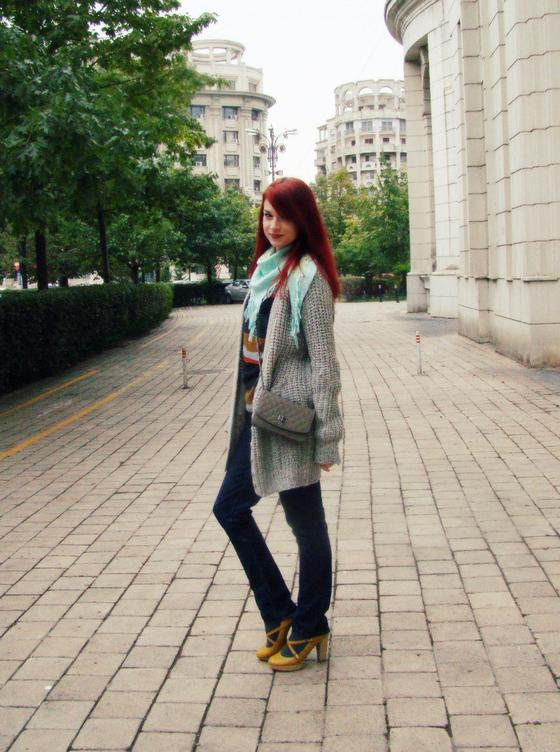 Wearing: Zara cardigan, Next jeans, Kara sweater, Stradivarius shoes, Meli Melo scarf